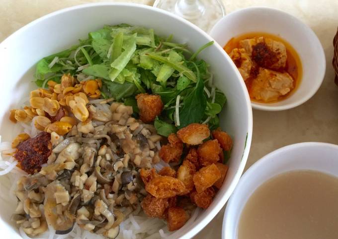Câu chuyện phía sau: Cơm hến có nguồn gốc từ làng Cồn Hến, một ngôi làng nhỏ bên dòng sông Hương ở Huế. Khi văn hóa ăn chay lan tỏa, cơm hến chay ra đời như một sự kết nối giữa đời sống giản dị và tinh thần thanh tịnh.